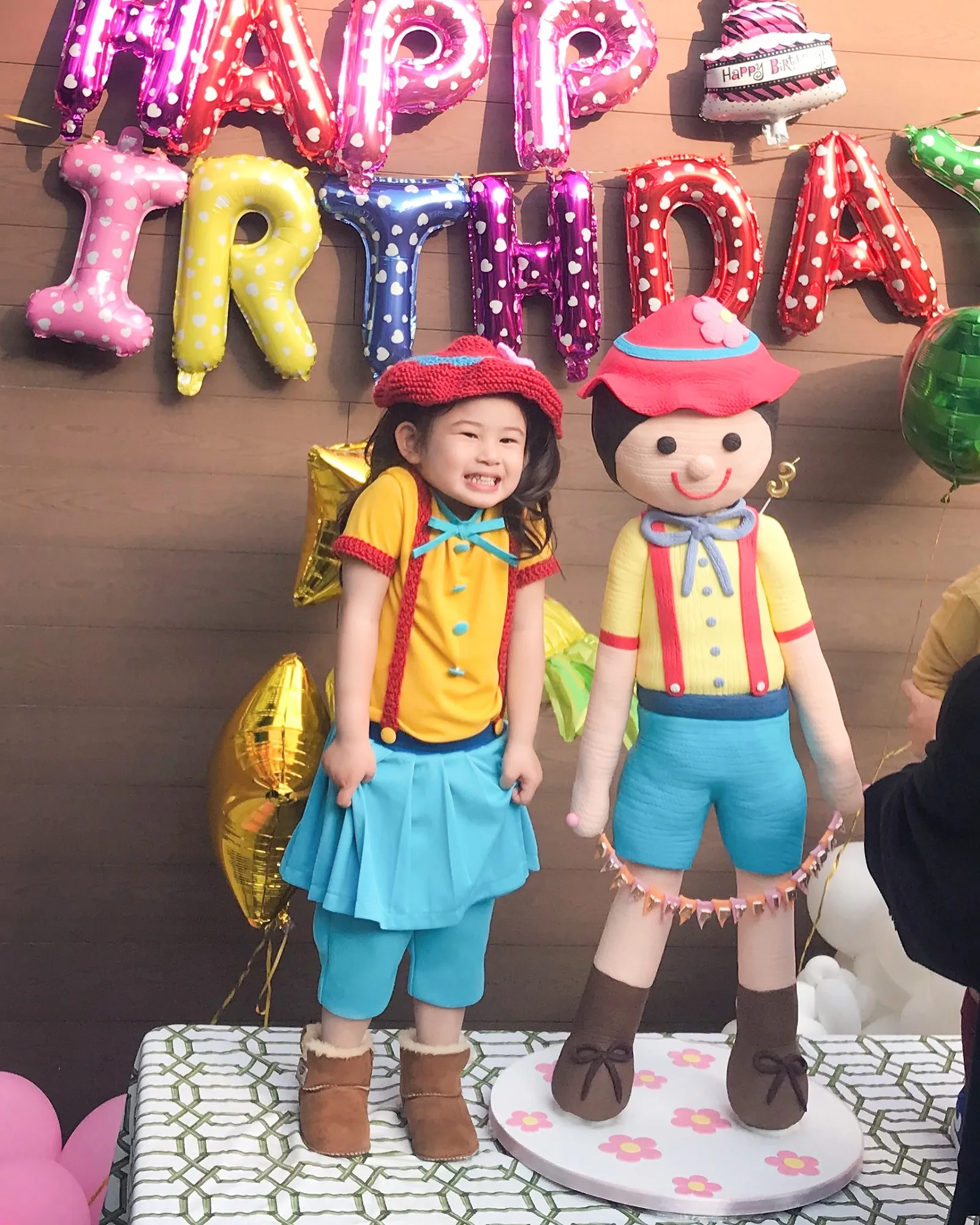 昨日是鄭希怡女兒樑浸浸的3歲生日,當天晚些時候鄭希怡在個人社交平臺發佈了一組為女兒慶生的生日會圖。照片中不僅有一家三口甜蜜幸福的合影,更吸睛的是鄭希怡別出心裁把浸浸cosplay成了其最喜愛的玩偶,並且準備了和女兒同等身高的玩偶形象蛋糕,可謂是為了女兒的生日上足了心思!此前,鄭希怡攜女兒樑浸浸參演某親子節目時便體現出浸浸對這個玩偶的寵愛,看照片裡浸浸面對自己最愛的玩偶蛋糕吐舌想吃又不捨得吃的模樣真真是萌化了一眾粉絲的心。