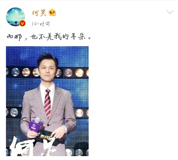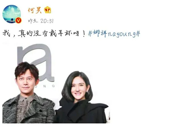 其中還有一個小插曲,不知道眼尖的你發現了沒呀!在這一張照片中,也真是迷之角度,錯位的如此神奇,真像是戴了耳環,當然,何老師也是及時澄清,:“我真的沒有戴耳環呀。”更搞笑的是,今日何老師又發了一條微博講:“當然,這也不是我的耳朵。”簡直了,舉一反三。機智幽默何老師啊!