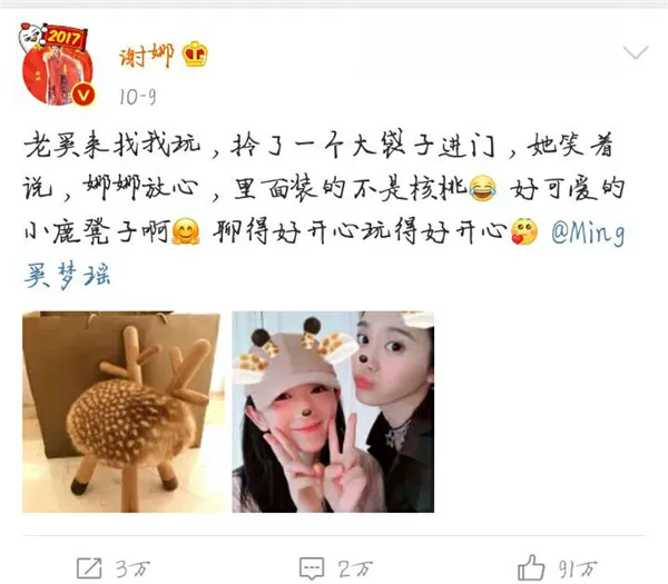 奚夢瑤來看望謝娜,給謝娜帶了超級可愛的小鹿凳子。小編也好想擁有一個這樣的凳子啊~
